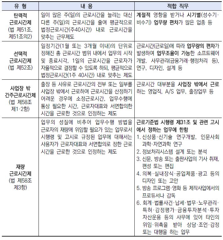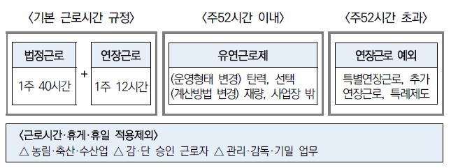 ※ 임산부와 18세 미만자는 야간근로와 휴일근로를 제한하며, 산후 1년 미만 여성근로자는 시간외 근로를 제한합니다. 특히 임신 중인 여성근로자는 시간외근로를 할 수 없습니다.
